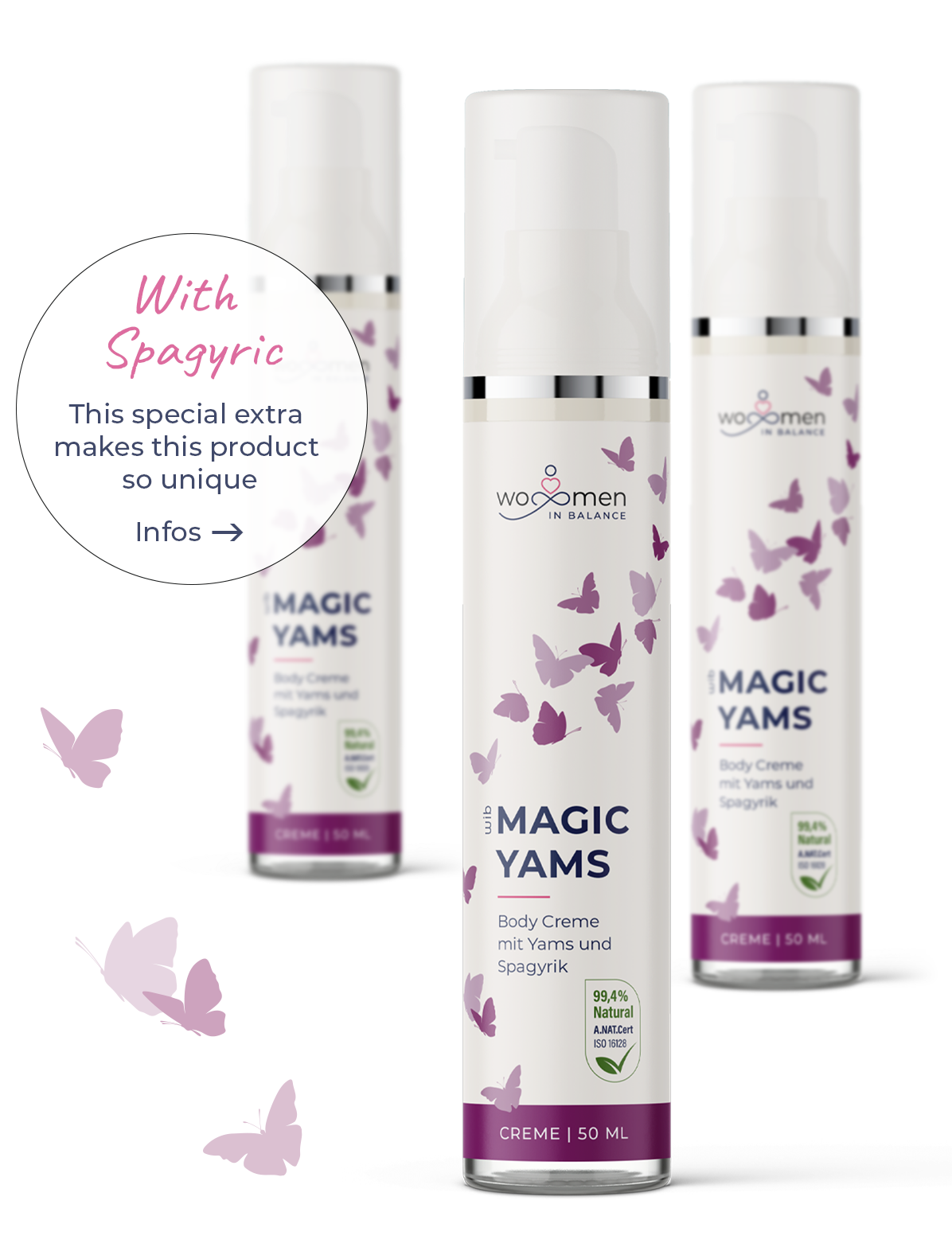 Contains diosgenin, spagyric essences and high-quality oils. Magic Yams unleashes the power of yam root extract. The plant hormone diosgenin is naturally contained in the yam root and is considered a progesterone precursor. Carefully balanced, natural ingredients from organic cultivation give this delicately scented body cream a new skin and life feeling.